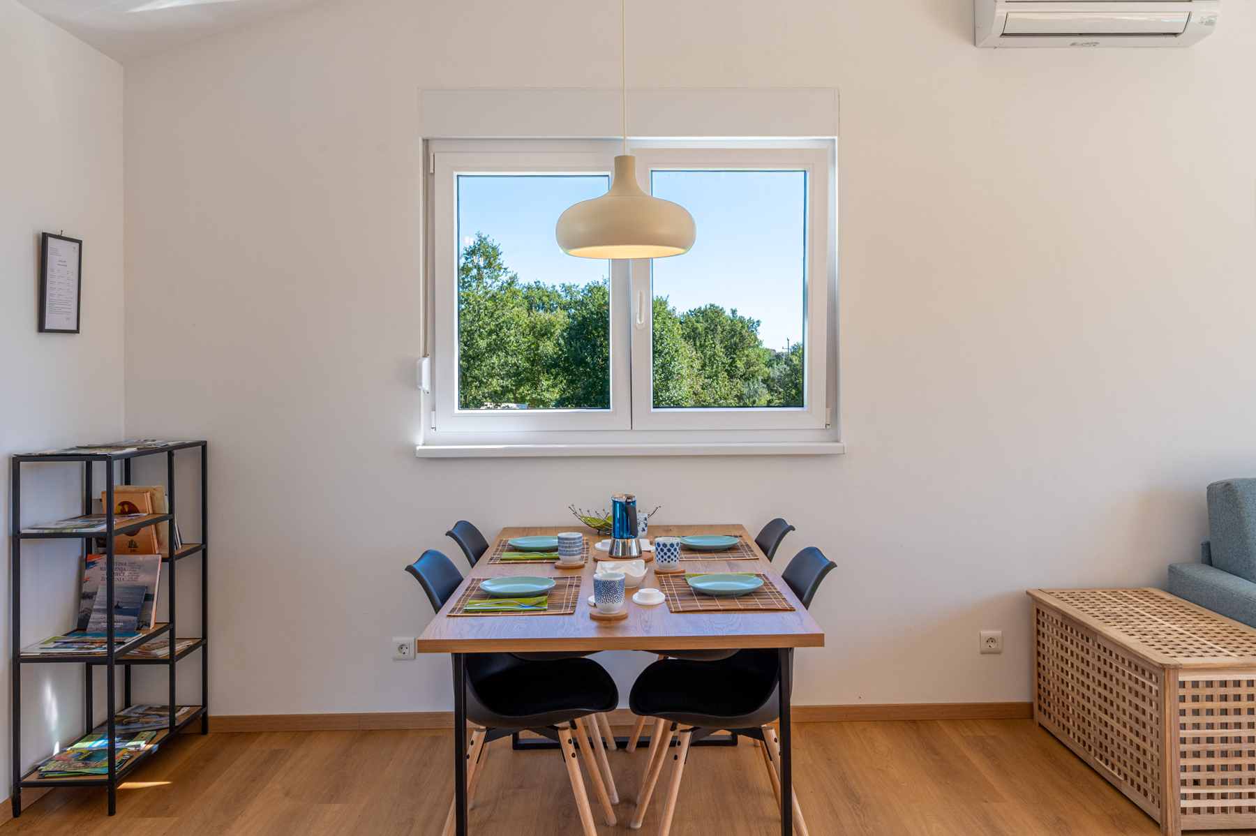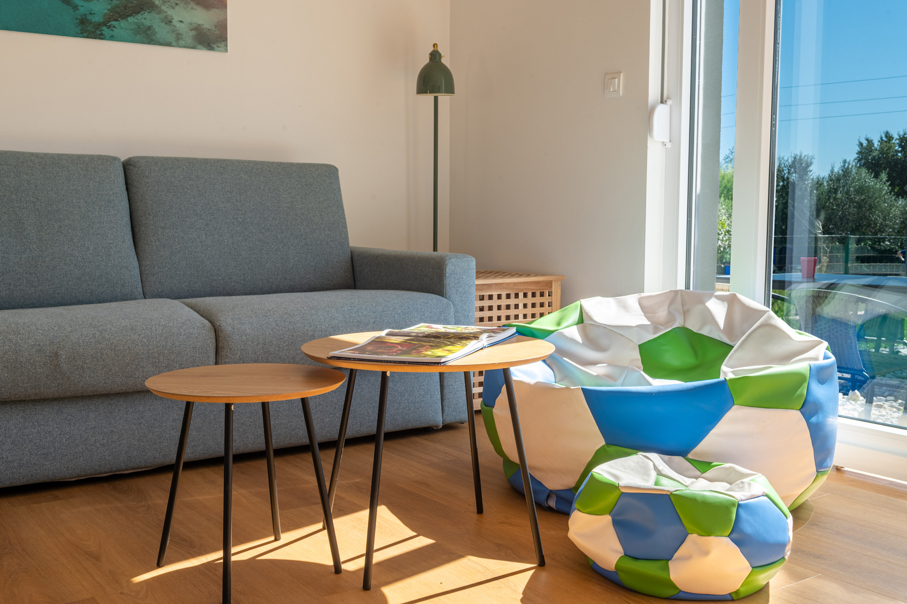 • Living room: spacious, air-conditioned, with smart TV; the sofa easily transforms into a bed for two (140 × 200)
