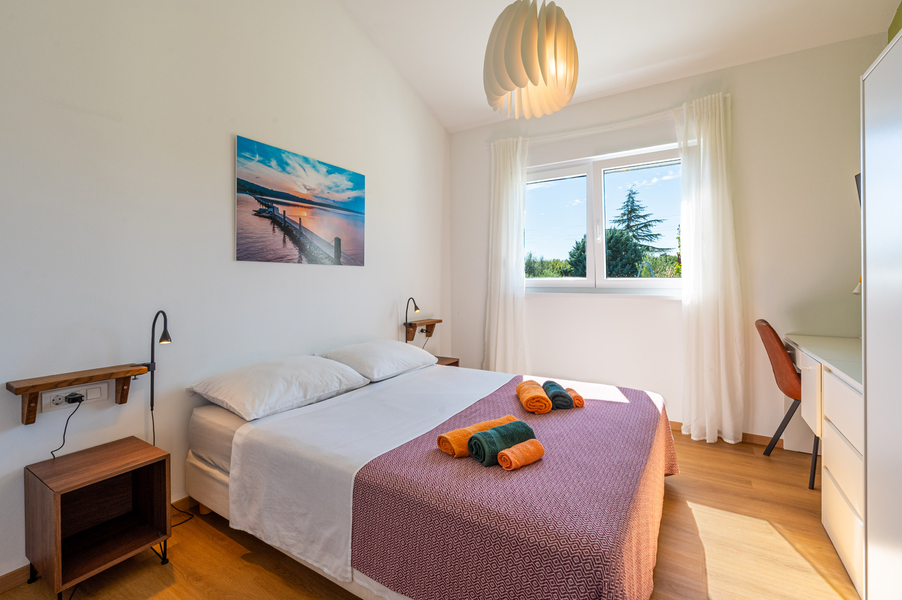 • Bedroom: 1 bedroom with a double bed (160 × 200), smart TV, and a workspace